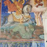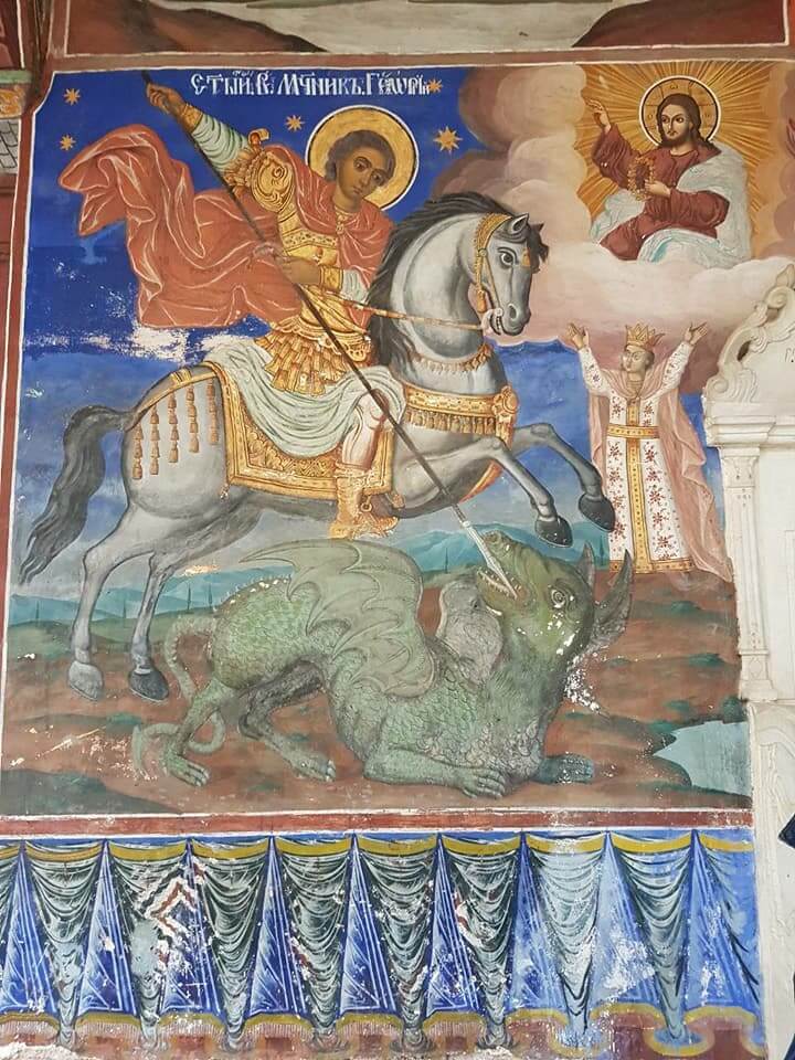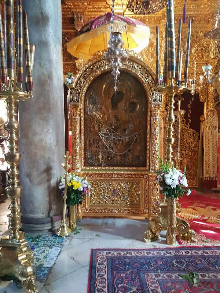 Среди святынь монастыря хранятся 2 большие чудотворные иконы Святого Великомученика Георгия, одна чудотворная икона Богородицы («Акафиста»), часть мощей и крови Святого Георгия, часть мощей Святого Афанасия-патриарха Александрии, Святого Нестора, Святого Варлаама, Святого Антипа, Святого Никиты, Евангелиста Матфея и другие святые